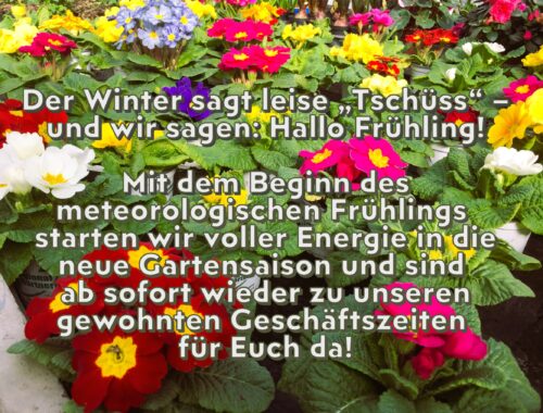 Am Sonntag, 27. April starten wir von 13.00 bis 17.00 Uhr im Rahmen unseres Tags der offenen Gärtnerei in den blühenden Sommer 2025. Unsere Gewächshäuser sind prall gefüllt mit Beet- und Balkonblumen, Kräutern und Gemüsepflanzen, Stauden und Sträuchern und einer großen Auswahl an Rosen. Assecoires rund um das Thema Garten und viel große und kleine Geschenkideen runden unser Angebot für Sie ab.